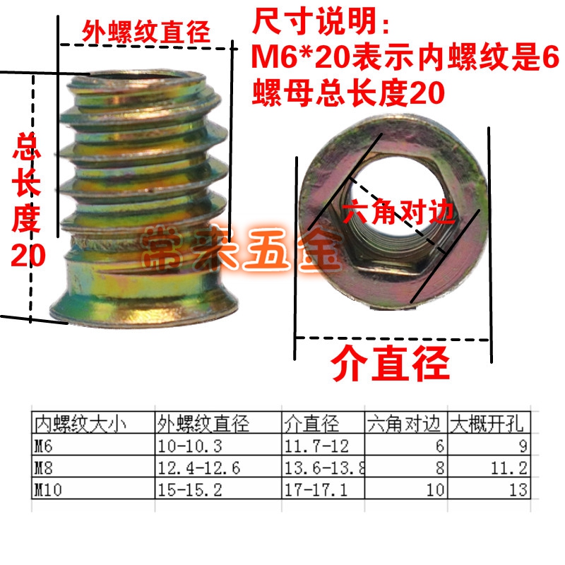 Furniture nut iron countersunk head internal and external tooth nut solid wood link pre-embedded mosaic hat with inter-building size M6M8M10