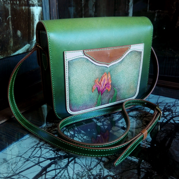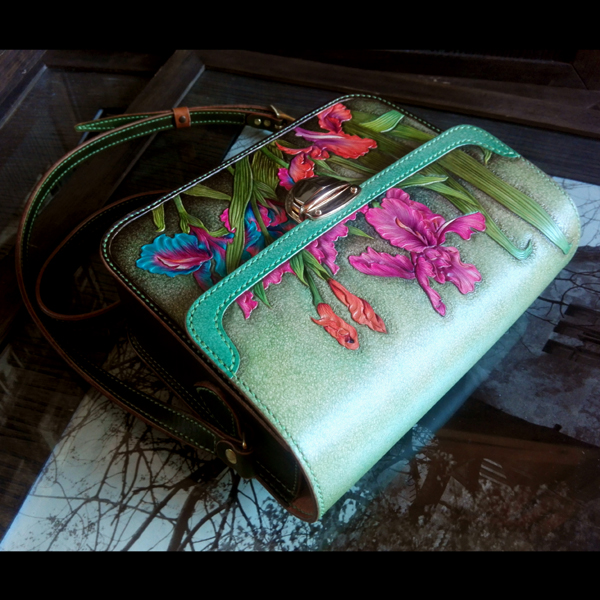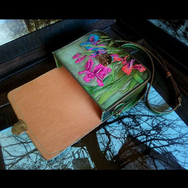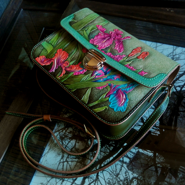 Handmade Genuine Leather Men's Bag Women Bag Booking Leather Carver Painted Bull Leather Kite Tail Flower Girl Skewed Satchel Bag