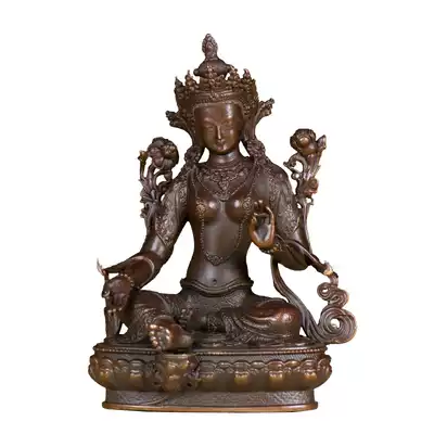 Buddha's margin Huizang Village 3-inch green mother Buddha statue Buddhism Tantra enshrines Taiwan Seiko bronze antique carved small Buddha statue