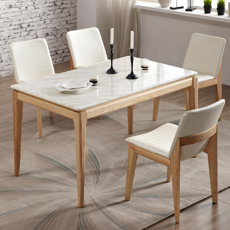 Li Mei Shi Nordic solid wood dining table and chair combination Modern home simple Marble small apartment Ash wood dining table Dining table