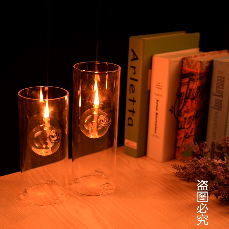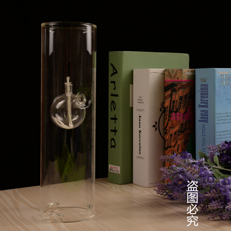 Superbeauty creative smoke-free transparent glass cylinder oil lamp lotus leaf bottom featured wedding gift instead of candle holder to give wick
