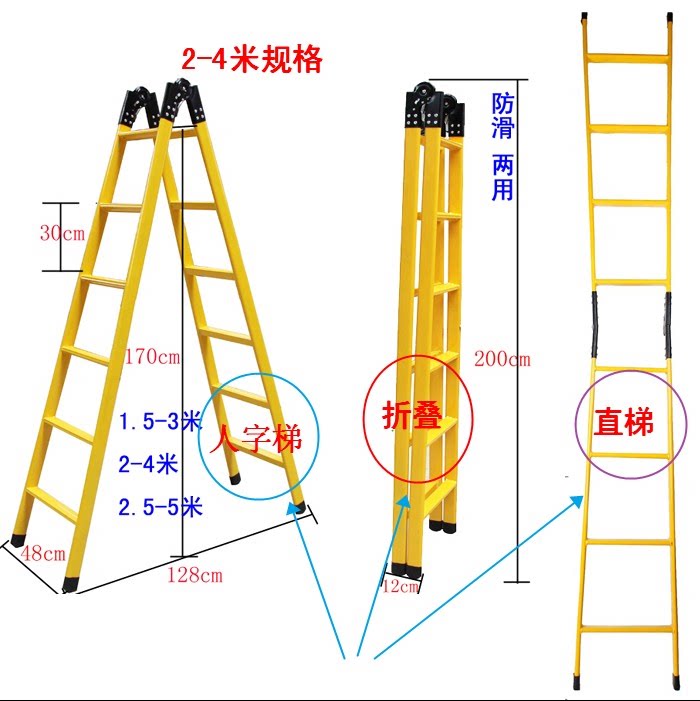 Thick steel pipe engineering ladder household ladder folding ladder 2 m 3 m dual - use joint attic staircase
