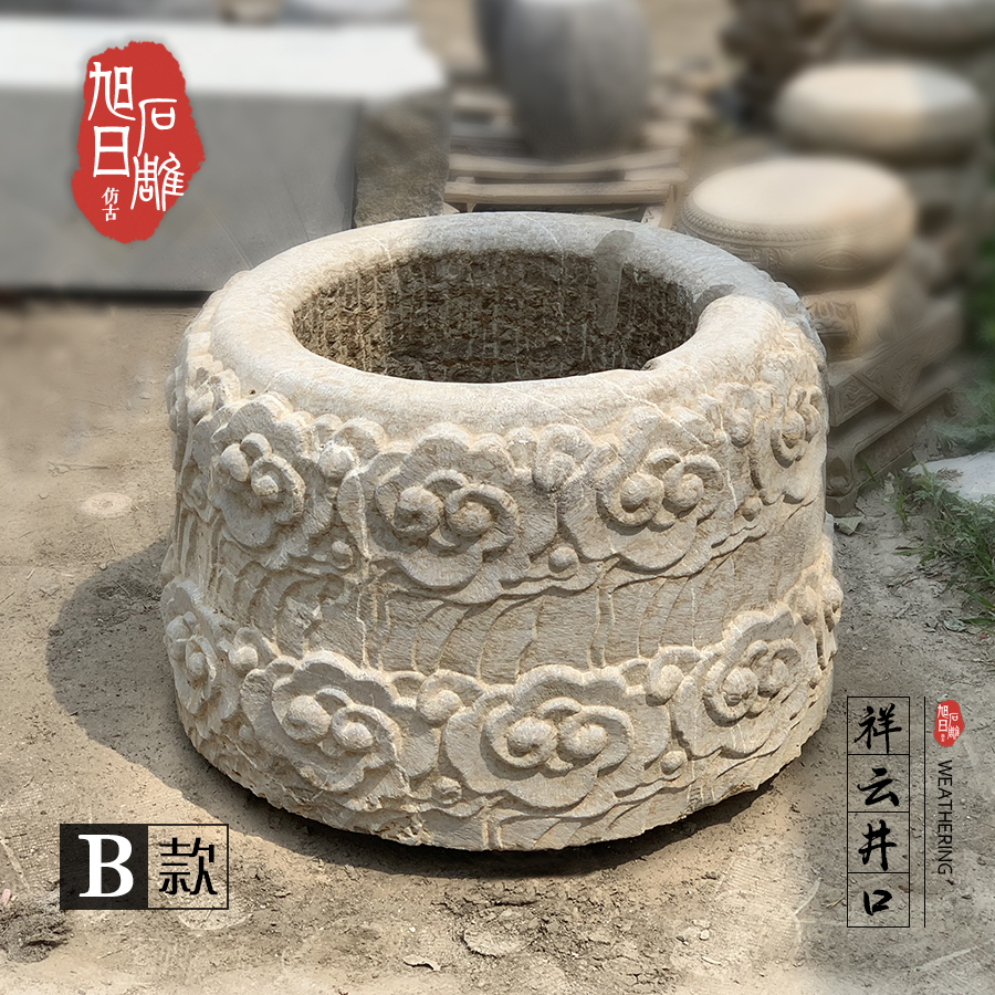 Stone carved wellhead stone wellhead well basin No bottom well ring well set stone wellhead stone sculpted well circle stone sculpted fish wellhead