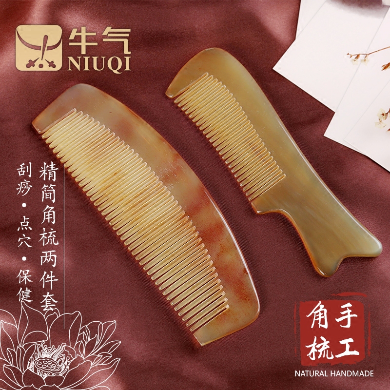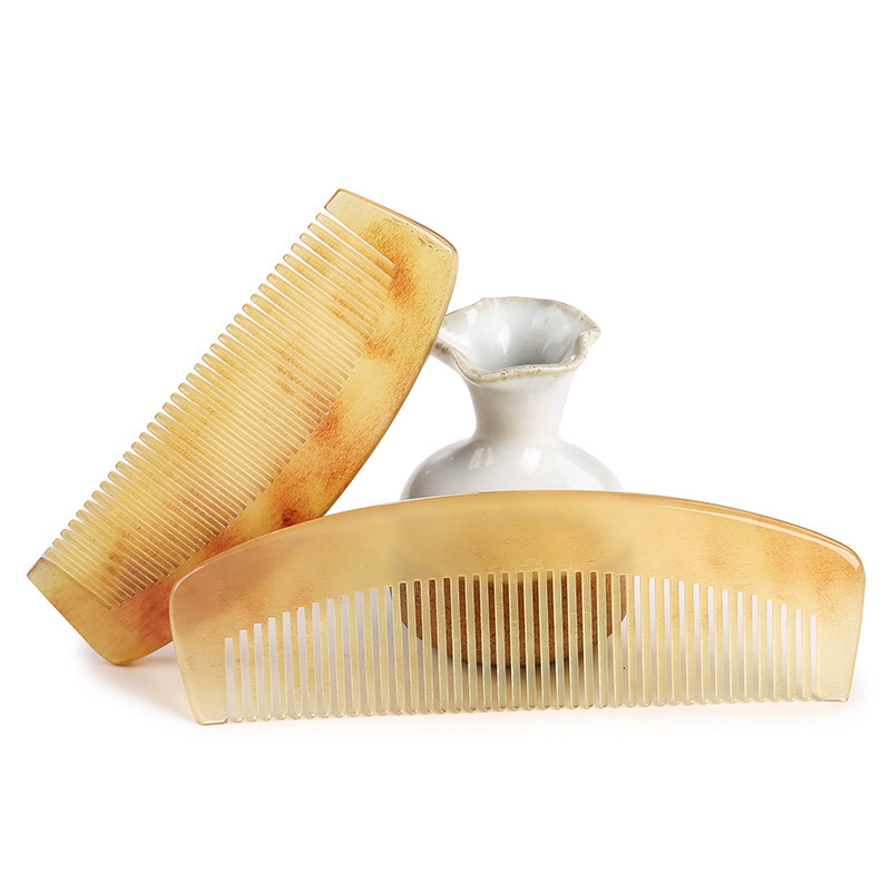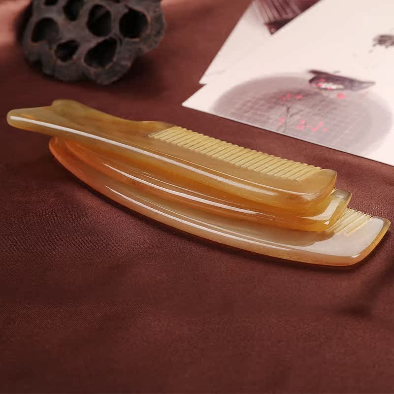 Authentic pure natural yellow horn comb portable hair-raising comb anti-static anti-hair loss thickening massage wooden comb