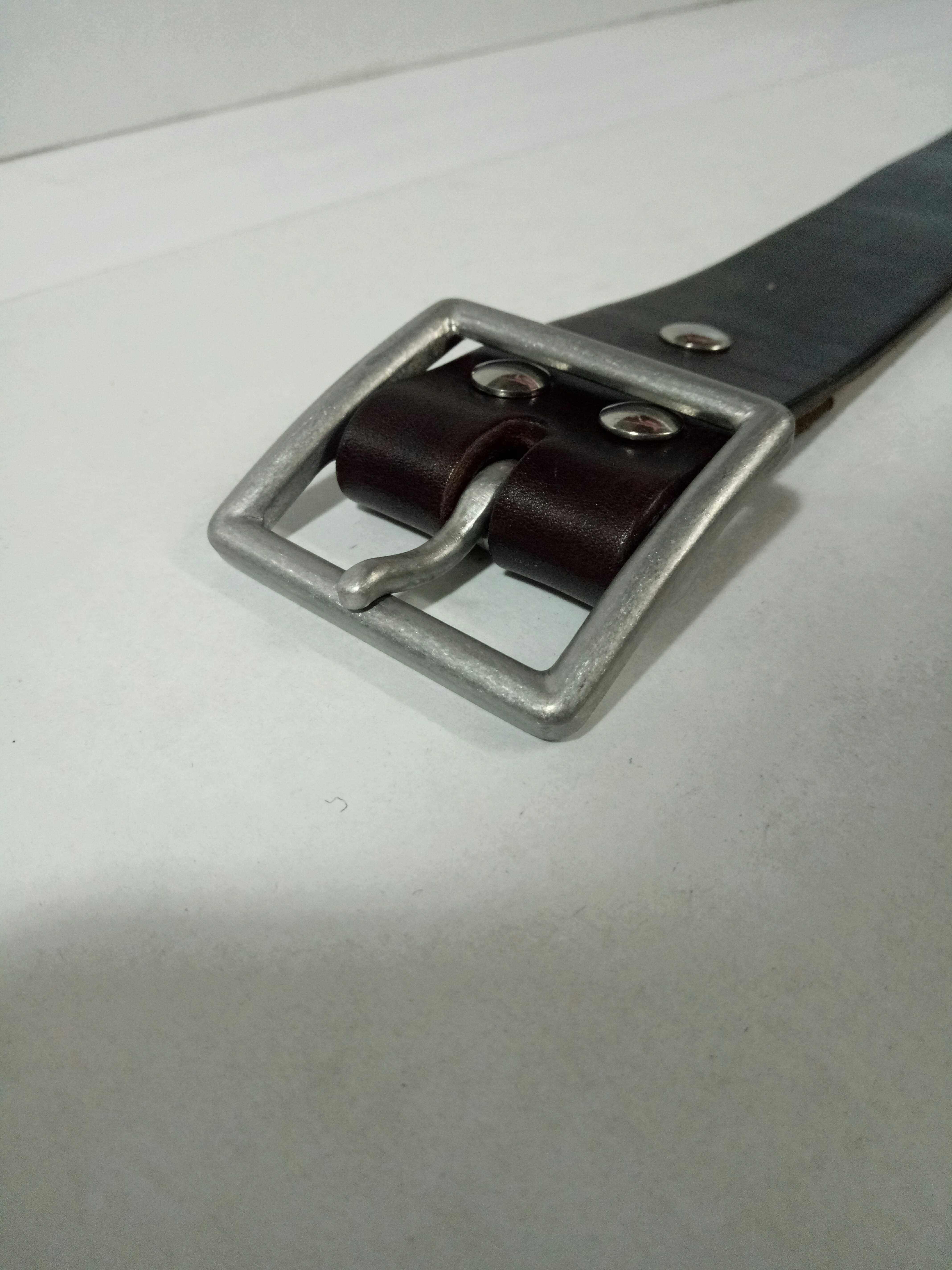 Muzi handmade stainless steel buckle Xiaobei with the same style men's denim khaki style top layer leather pants belt hot sale