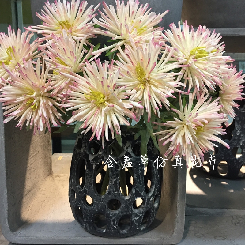 Emulated silk flower delicate single branch crab claw Chrysanthemum Home Balcony Living-room Furnishing Simulation Flower Silk Flowers and matching