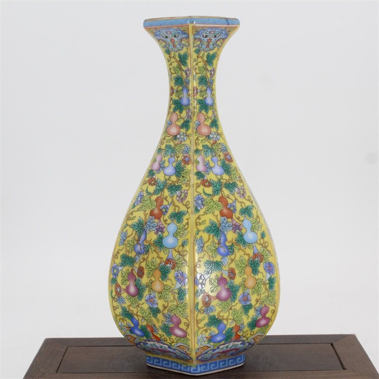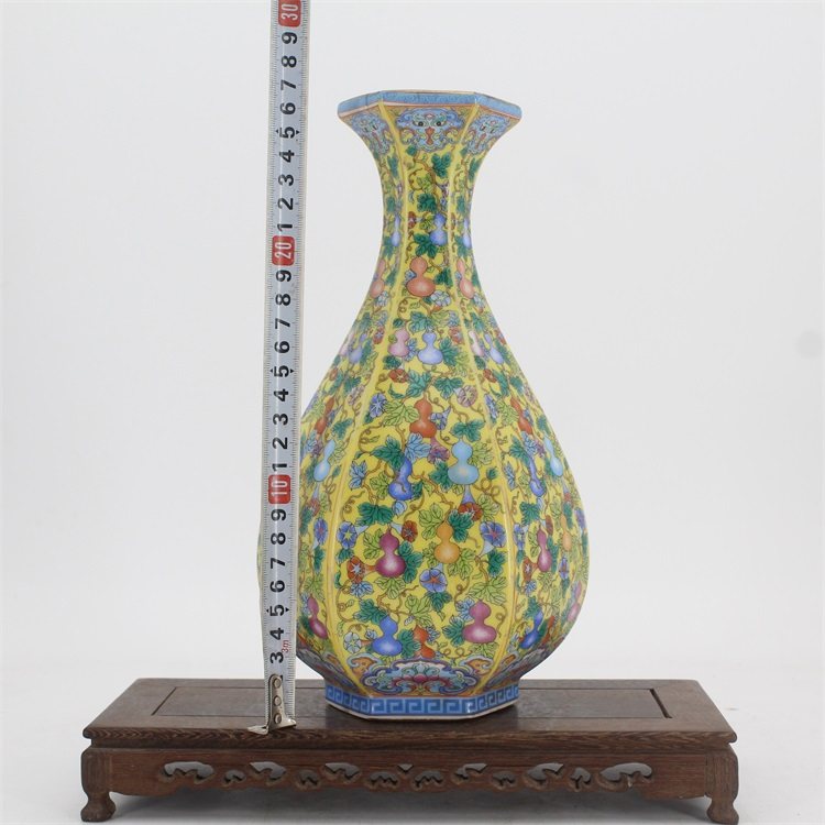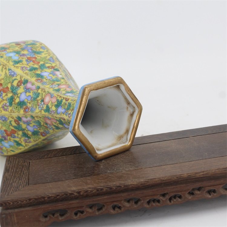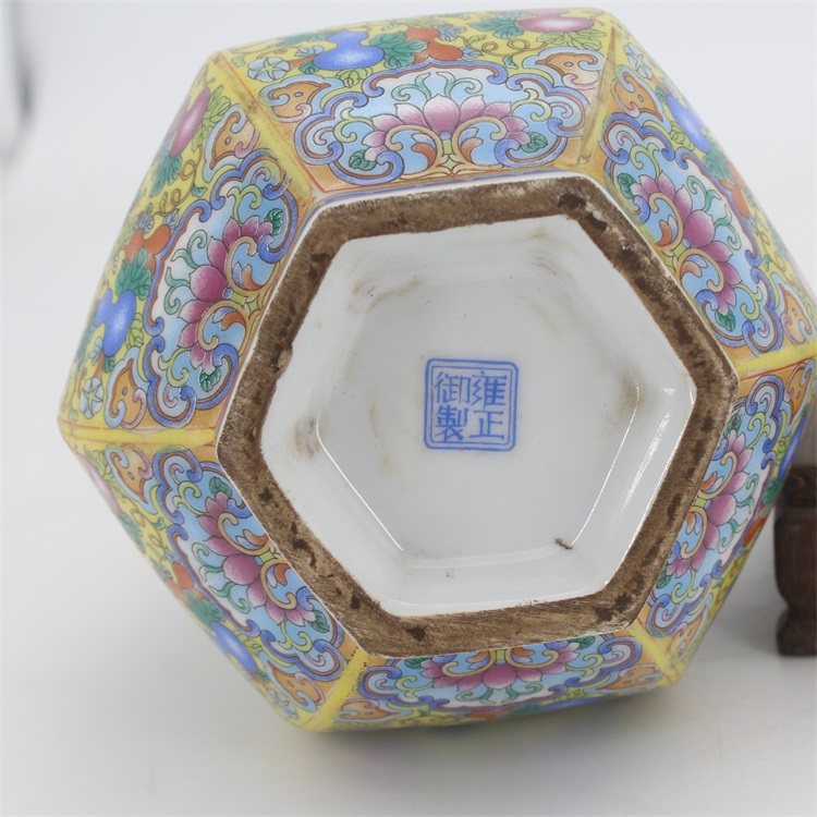 Yongzheng imperial system of yellow bottom enamel colorful hyacinth tattooed hexagonal jade pot Spring bottle Antiquity ancient play retro-style imitation ancient porcelain