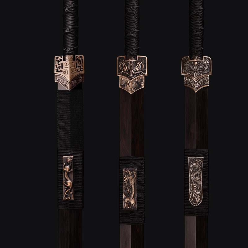 (Standard Han sword) 30 inches (Standard Han sword) 30 inches covered with soil burning blade (Four beasts Han sword) 30 inches (Four beasts Han sword) 30 inches covered with soil burning blade (Dragon pattern Han sword) 28 inches (Dragon Han sword)