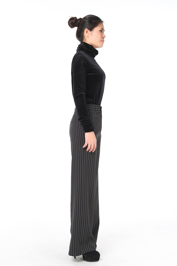 Black High Waist Ensemble Leather Strap Women Pants (Black Bottom Stripes)