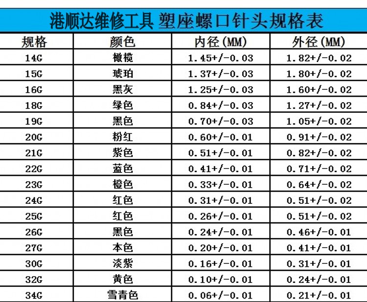 14G(olive) outer diameter 1 8215G (amber) outer diameter 1 816G (black gray) outer diameter 1 618G (green) outer diameter 1 2719G (black)