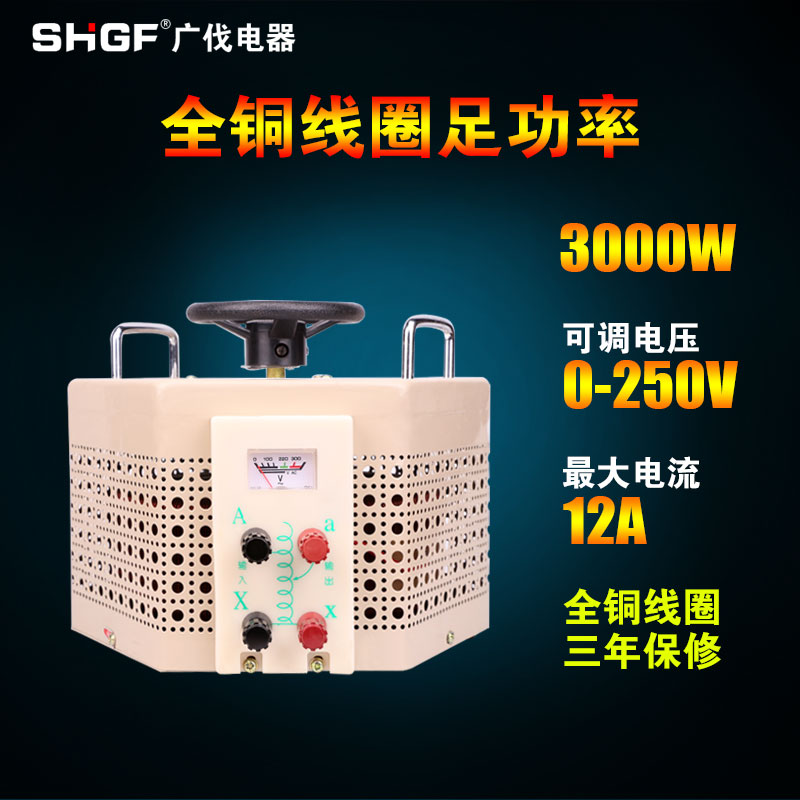 Guangfa single-phase voltage regulator 3000w Household voltage 220V contact manual adjustable AC voltage regulator 3kw