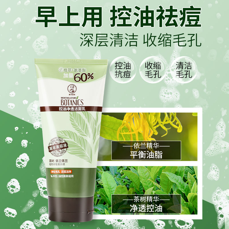 Manshoten Oil Control Purifying Cleanser Male and Female Tea Tree Acne Removal Oil Removal Moisturizing Hydration Deep Cleansing Cleansing Cleanser