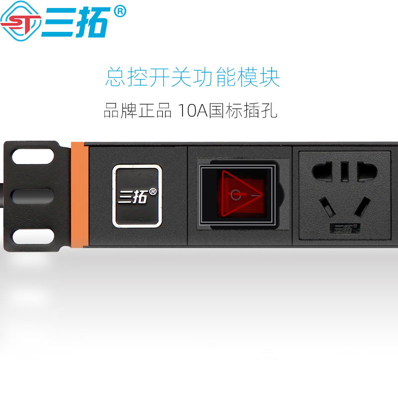 Santuo PDU cabinet socket Industrial socket metal power supply 8-bit 10a with switch New National standard high-power multi-function wiring board Rack-mounted TS 8008