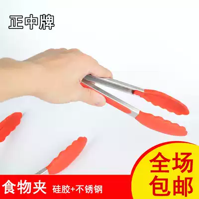 Stainless steel food clip thickened and extended silicone clip Bread clip Cake clip vegetable steak clip Baking non-slip clip