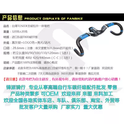 TOSEEK all-carbon fiber one-piece road bike bend handle Broken wind handle Blue standard extinction lifting one-piece bend handle
