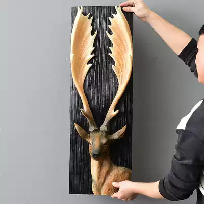 American deer head animal head Wall Wall decoration creative retro three-dimensional porch Wall pendant Living Room bar decorations