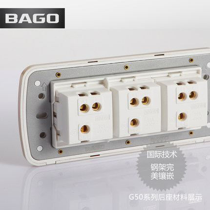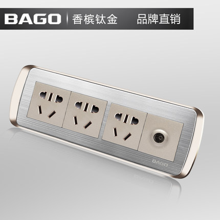 Baigao switch 118 Type 4-bit panel TV 3 inserts Home Switch Socket Panel Champagne Gold Wire Drawing