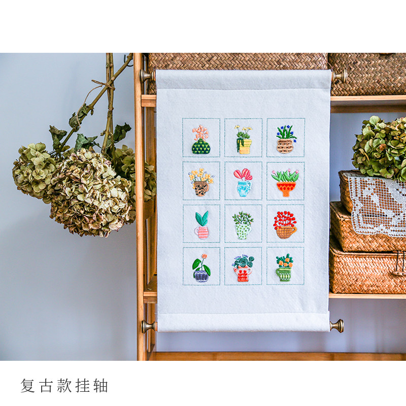 Embroidery display hanging scroll pure copper head scroll cross stitch three-dimensional embroidery Su embroidery framed display hanging rod