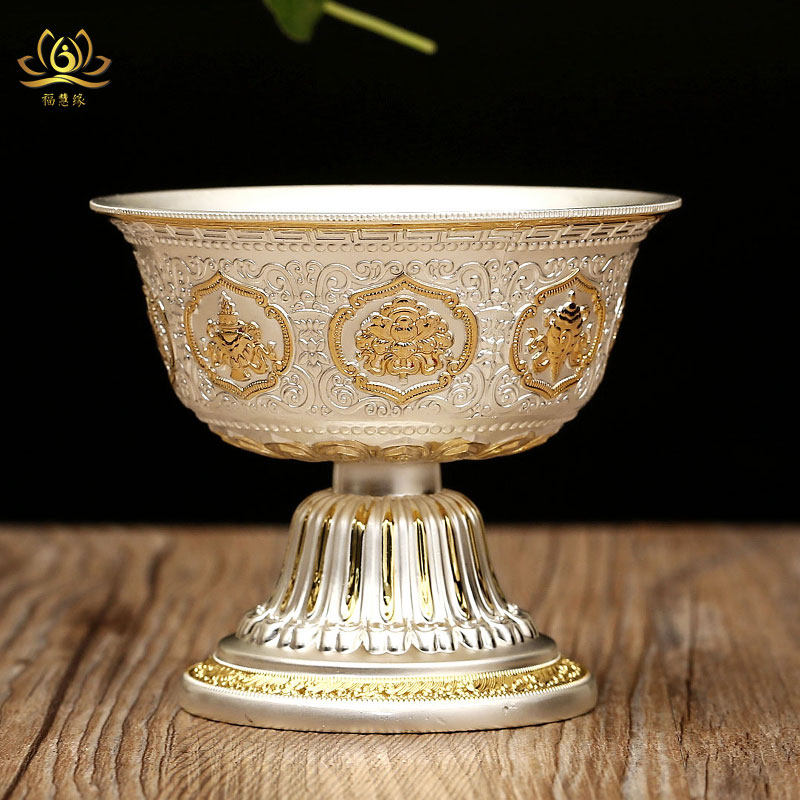 All alloy water cup Gilded eight cup high foot water cup diameter 9 5cm