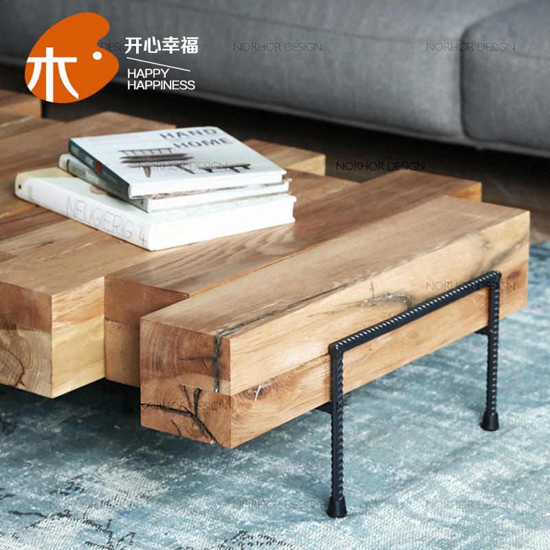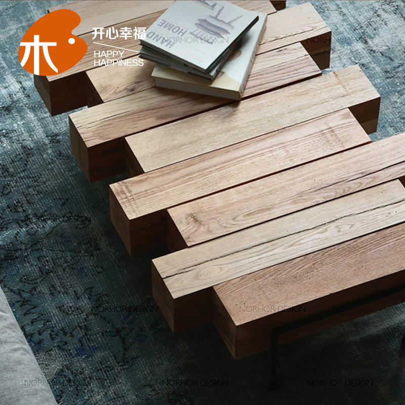 American creative personality wood block split tea table loft industrial wind solid wood tea table iron leisure sofa reception table