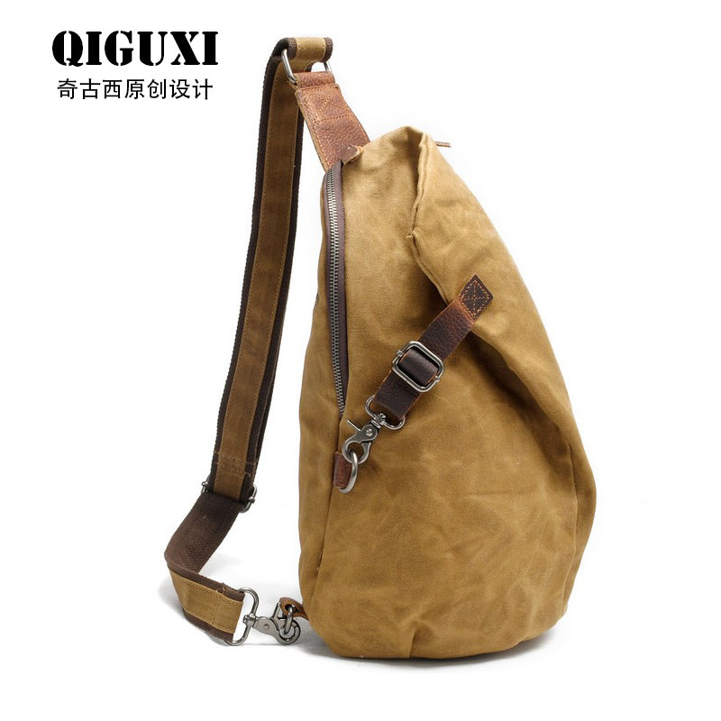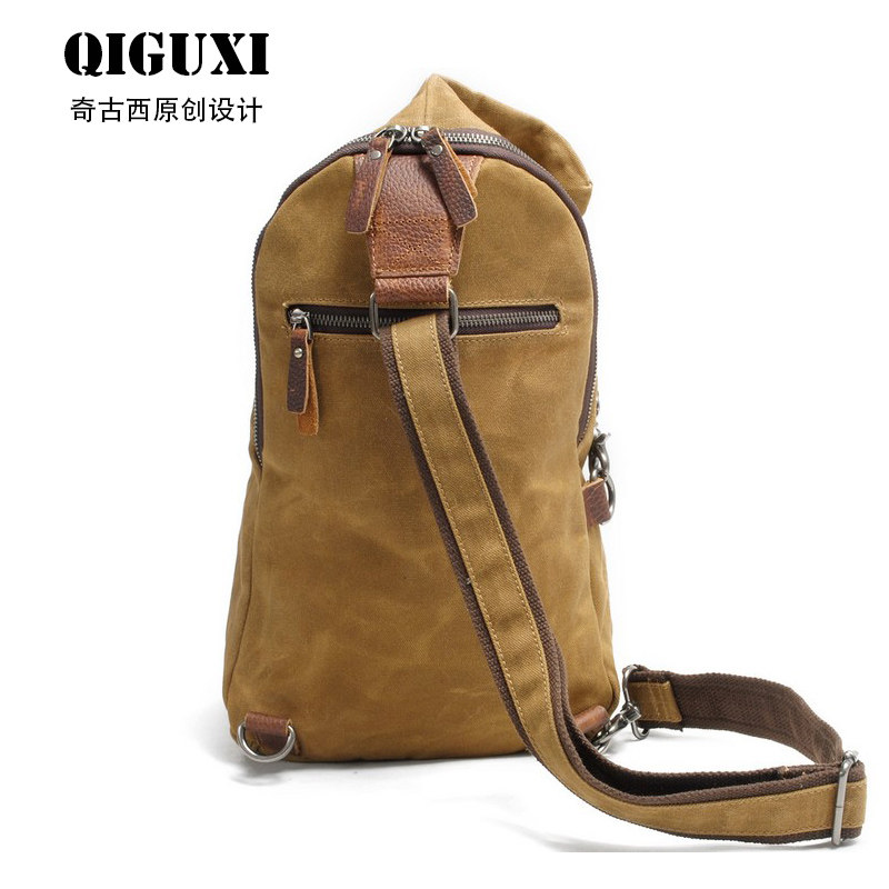 Chigusi original old backpack new waterproof oil wax canvas bag vintage shoulder shoulder bag street tide men's breast bag