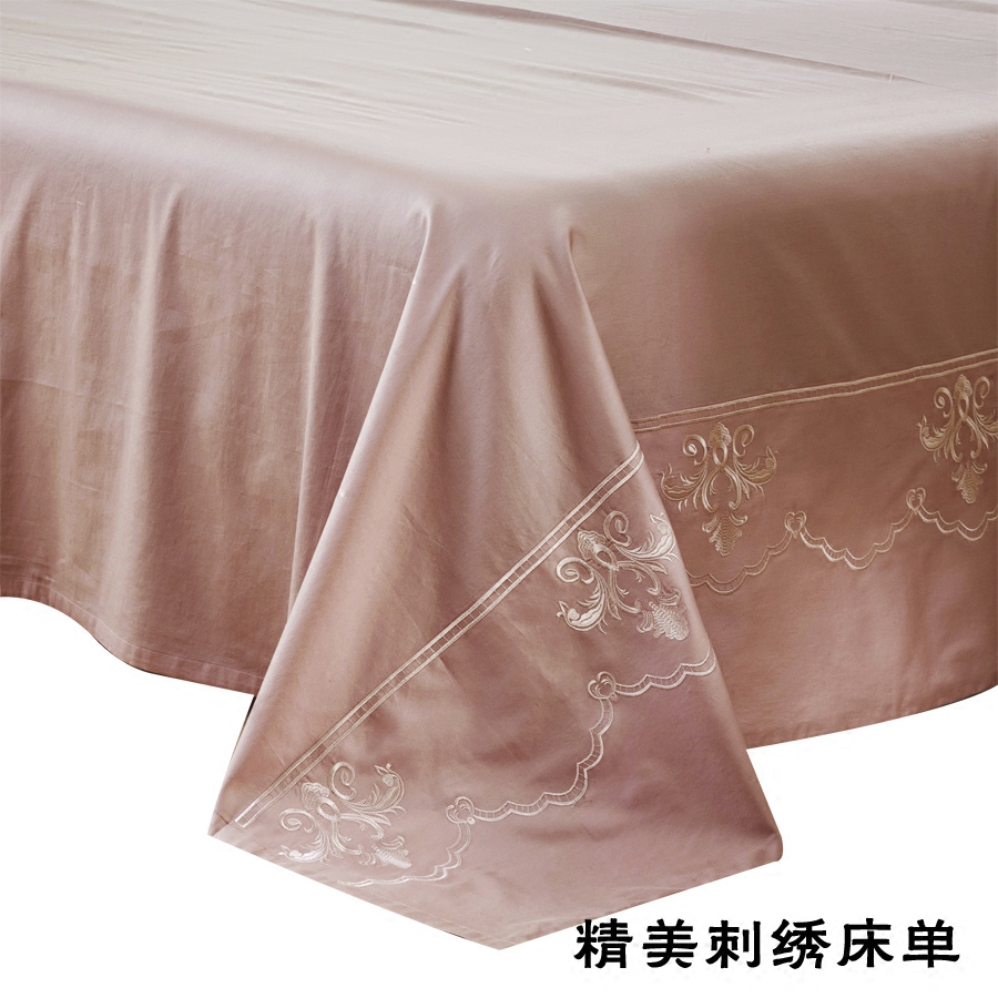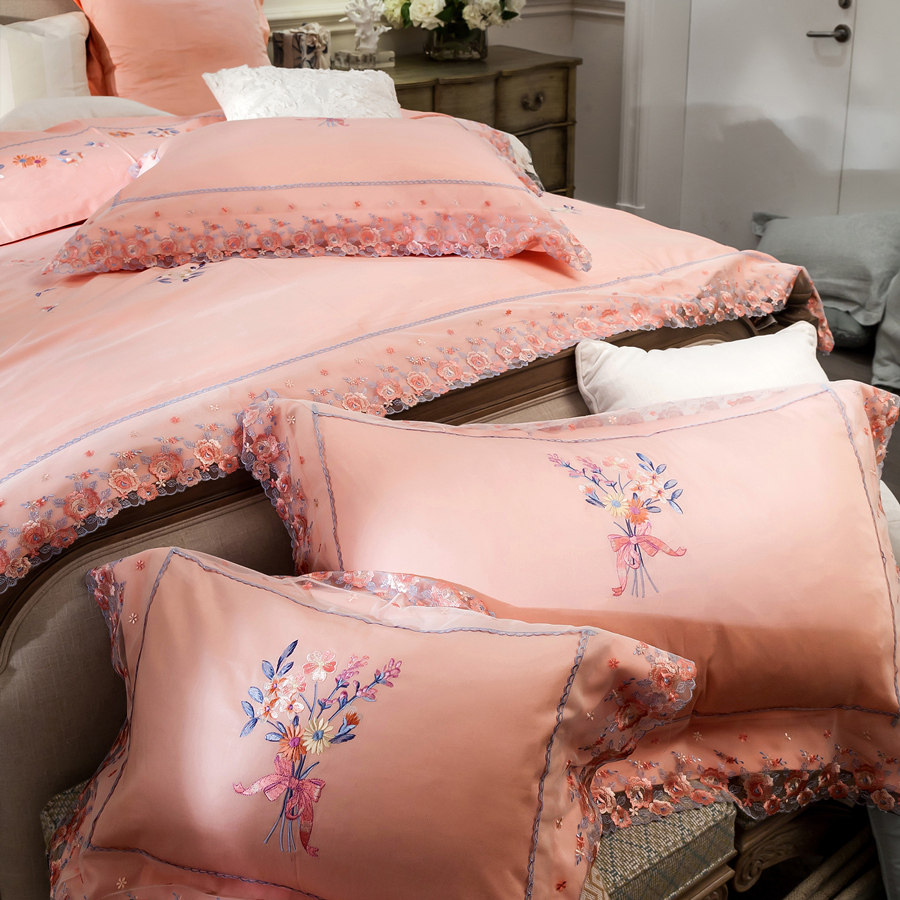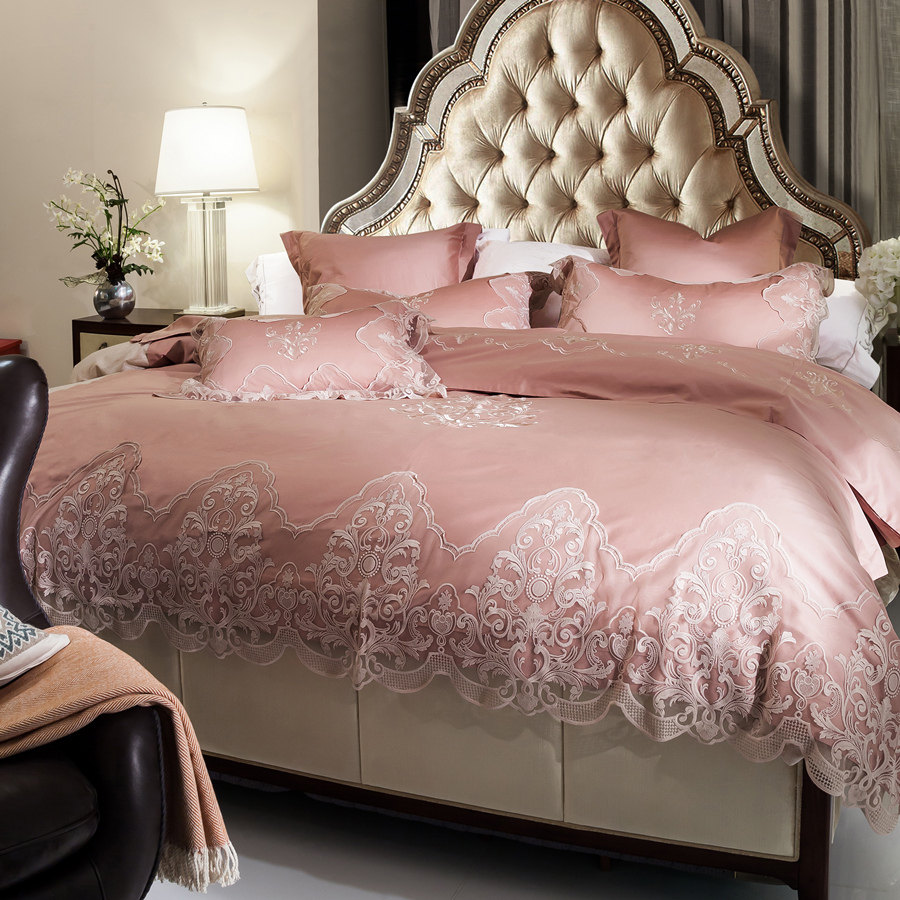 High-grade European cotton satin four-piece bed bag velvet cotton model room Lace embroidery Wedding princess solid color six-piece set