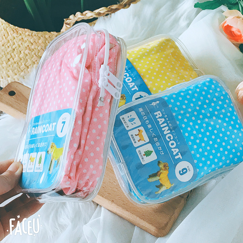 Japan ASUK Eske pet raincoat dog spring and summer hooded polka dot poncho available in three colors