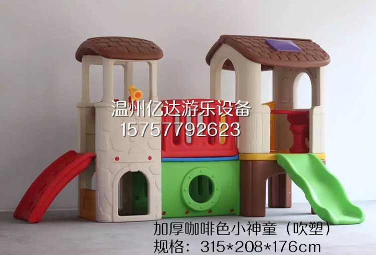 A plastic wooden game house with a wooden house