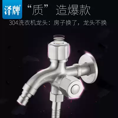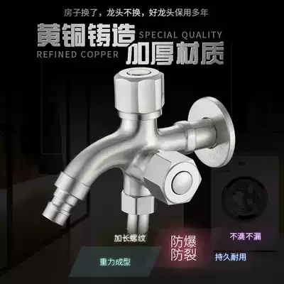 304 stainless steel washing machine faucet single cold quick open multifunctional double head double use three-way one in two out faucet