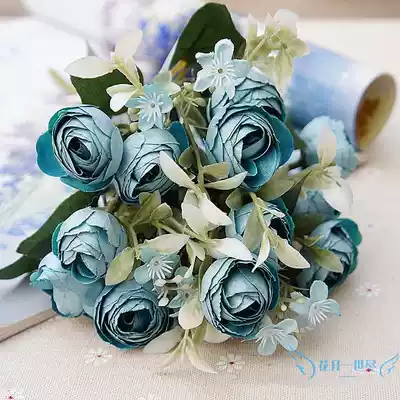 Simulation flower fake flower European style small handle 13 pearlescent tea bud bouquet handmade wedding hand bouquet photography wall-mounted flower