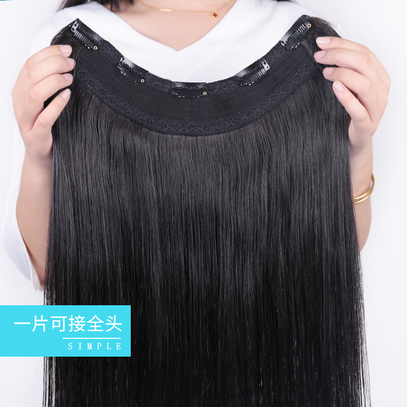 Real hair a piece of style wig piece Real Hair Straight Hair Straight Hair patch No-mark hair loss Invisible Thickening U Type Genuine Hair sheet
