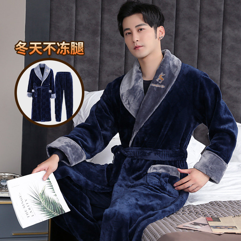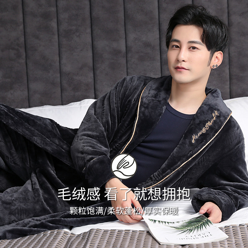 Shangzhi nightgown men's winter thickened long version of flannel men's nightgown Autumn and winter coral velvet bathrobe velvet pajamas men's