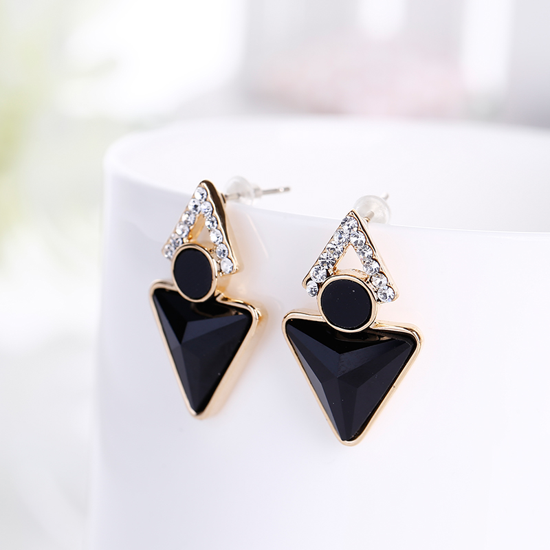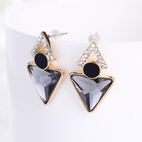 Ear acupuncture s925 sterling silver female crystal earrings super flash Korean temperament triangle ear buckle simple hypoallergenic earrings