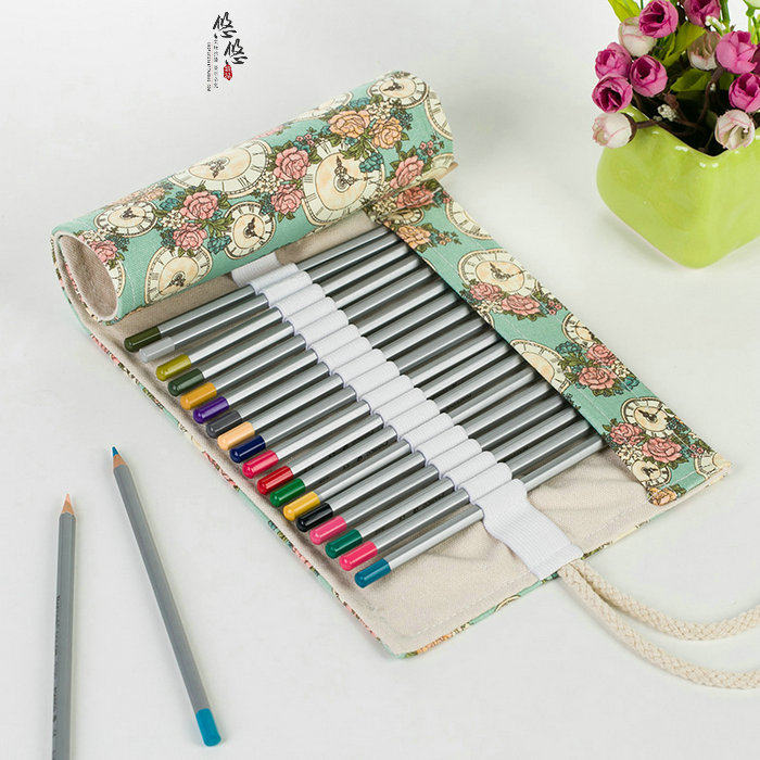 Factory Outlet Rose Clock Handmade Canvas 36 48 72 Color Lead Sketch Painting Roller Curtain Pencil Bag