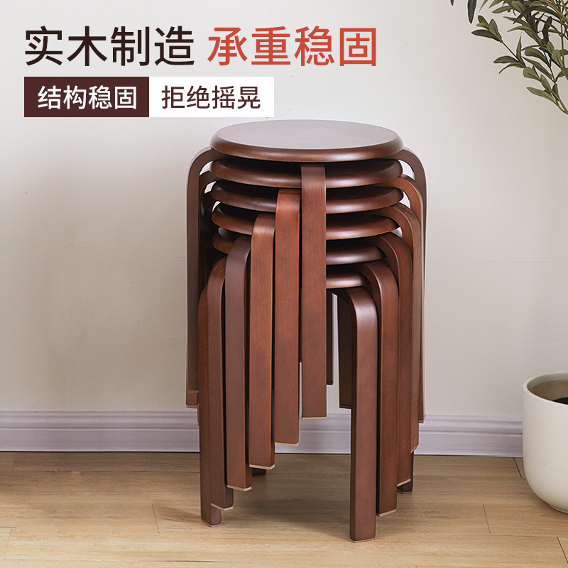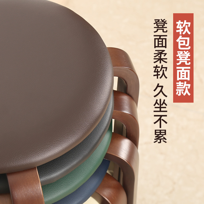 Solid wood stool Household small bench stackable low bench Living room round stool Wooden stool Soft bag dining table storage high stool
