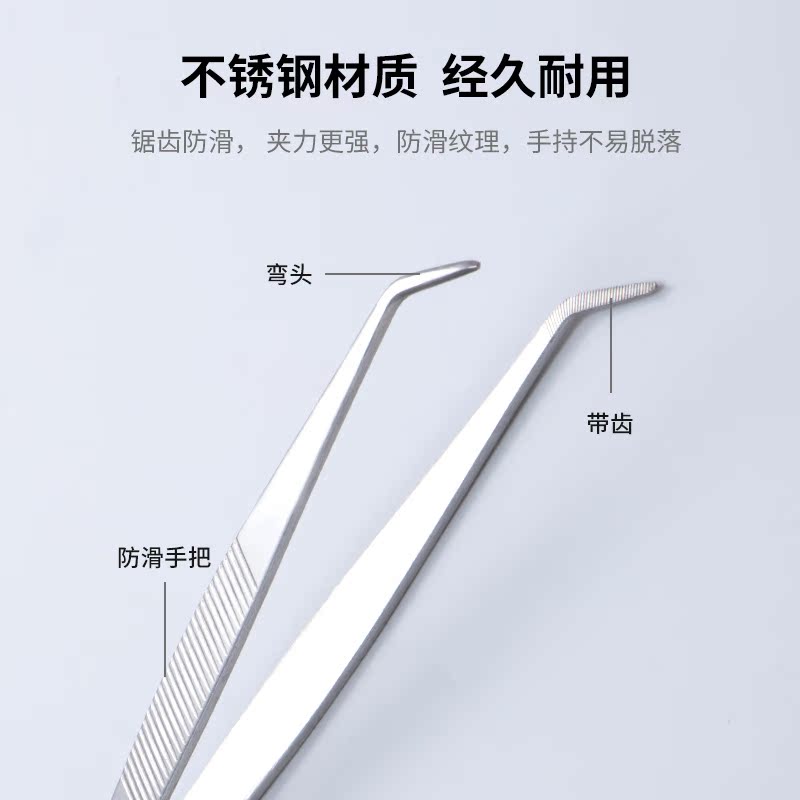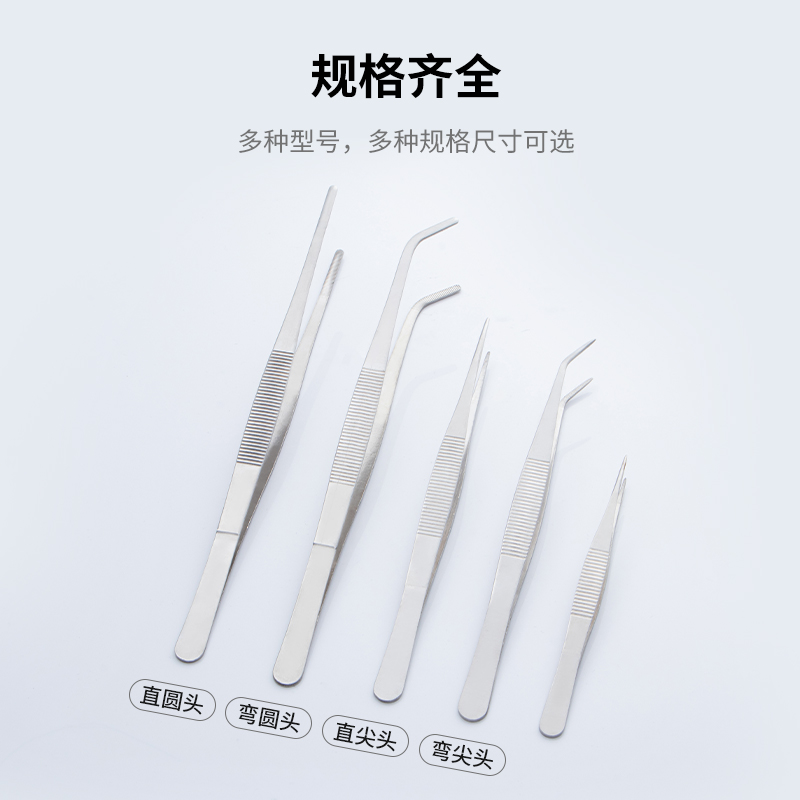 Laboratory stainless steel tweezers elbow tip 304 anti-static toothed dressing clip 14 16 18 25 30cm