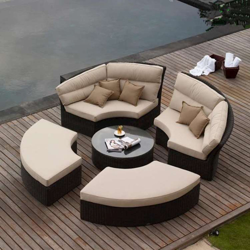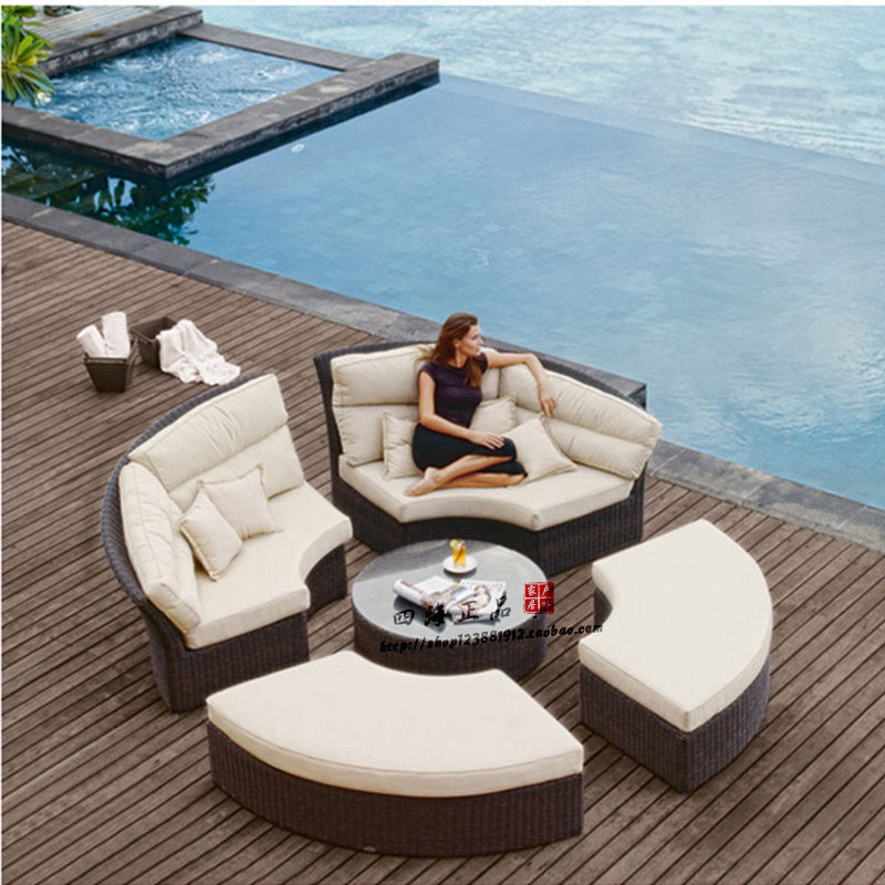 Outdoor rattan sofa leisure hotel outdoor imitation rattan sofa garden open-air round bed rattan sofa combination