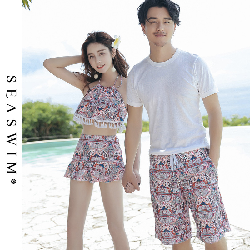Couple swimsuit women's three-piece Korean hot spring Xiangfeng bikini sexy 2021 New Swimsuit Beach set