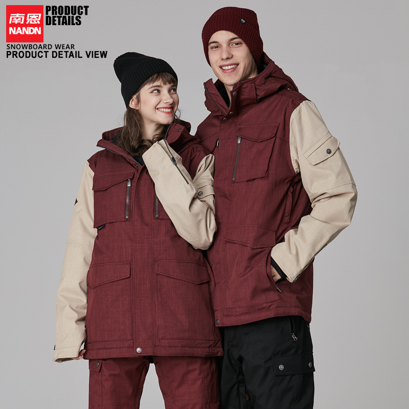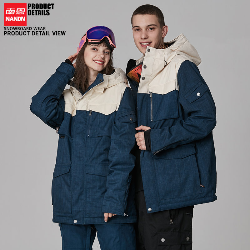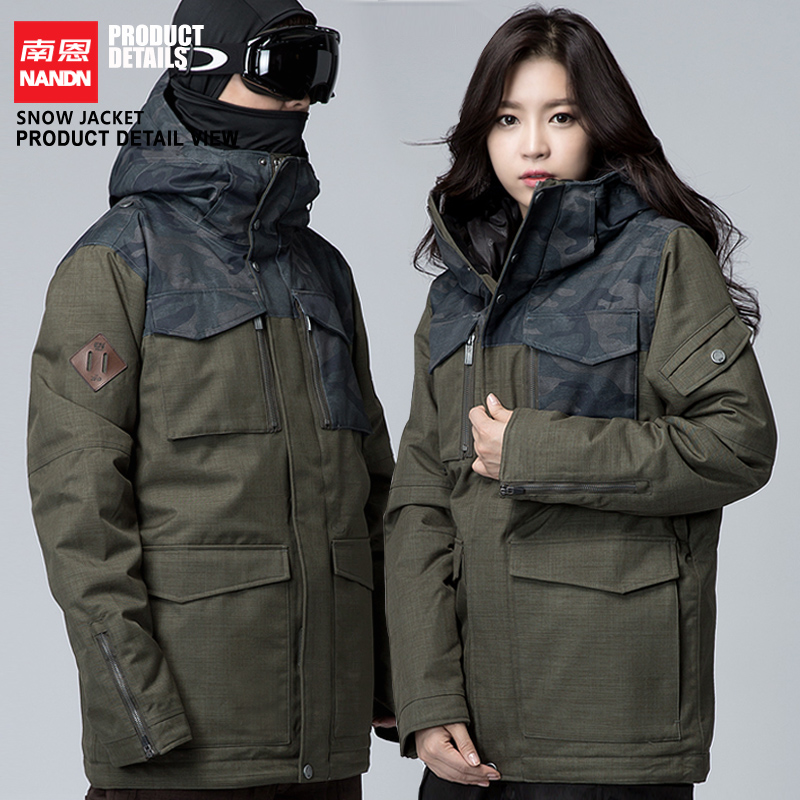 The new Korean version of the couple ski wear workwear double board snowboard ski suit waterproof long slim jacket cotton men and women