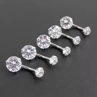 Belly button internal thread all stainless steel hypoallergenic clip double zircon round non-allergic medical steel rod umbilical ring