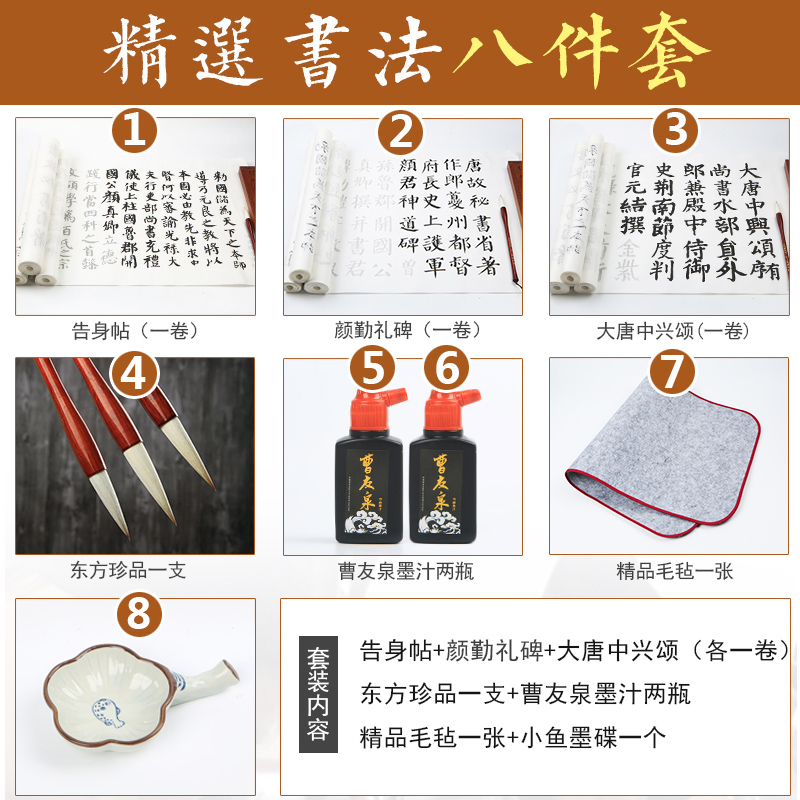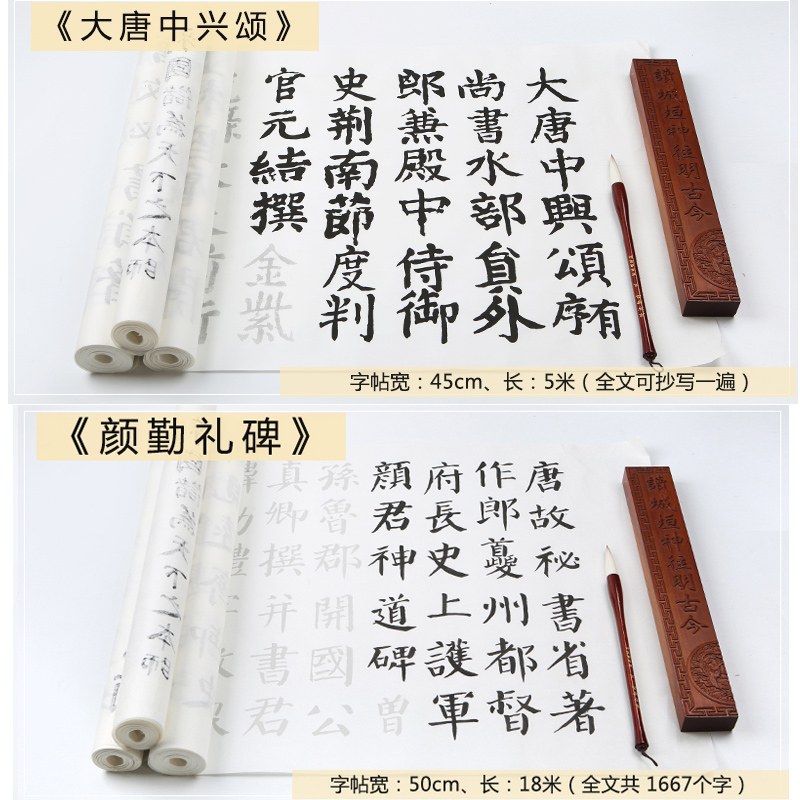 Yan Qinli Monument 18 meters a volume of self-written body post 7 meters a volume of Datang Zhongxing Song 5 meters a volume of three articles each a volume of writing eight packages (brush ink ink butterfly felt)