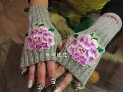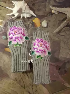 Cloud decoration totem original design women's jewelry gloves national style hand embroidery Su embroidery purple flower warm knitted gloves
