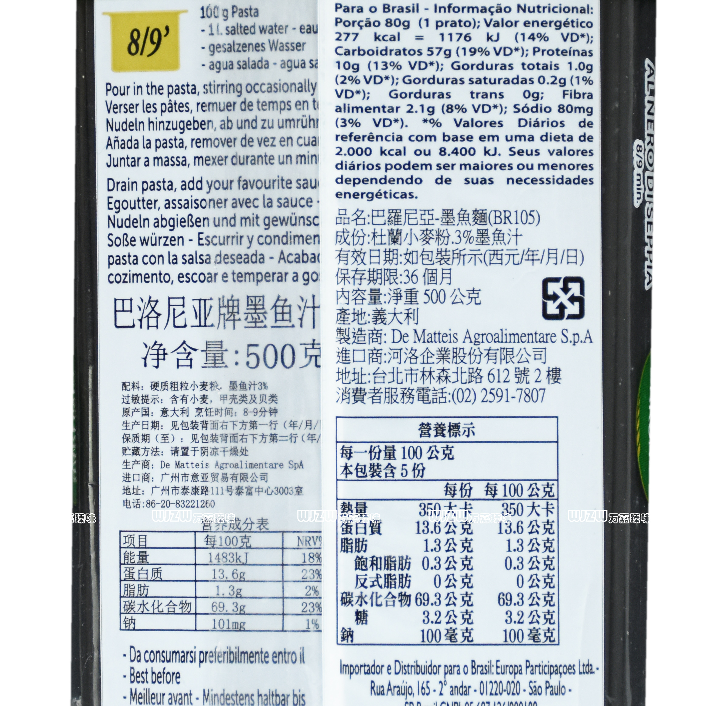 Italy imported Balonia cuttlefish juice noodles 500g Cuttlefish noodles Italian noodles buy 5 packs