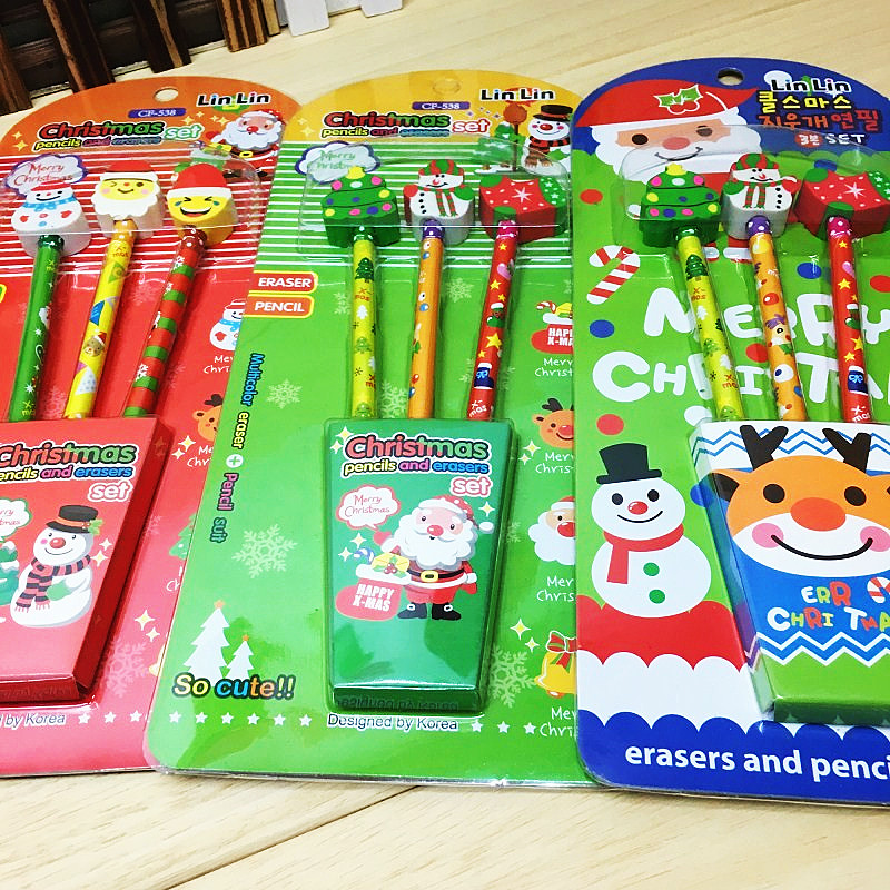 Christmas Gift Box Eraser Pencil Set School Supplies Kindergarten Children Christmas Gift Wholesale