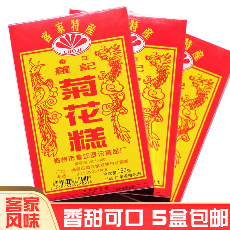 Full 5 boxes of Meizhou Hakka specialty Luo Ji Chrysanthemum cake Meixian snacks Traditional pastries snacks Glutinous rice soft cake