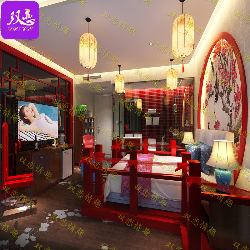 Theme homestay furniture wrought iron electric bed hotel hotel sex bed net red apartment double vibrating couple water bed