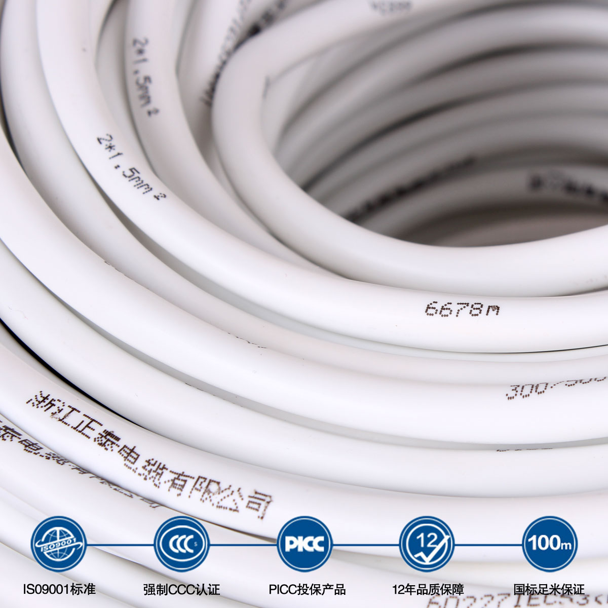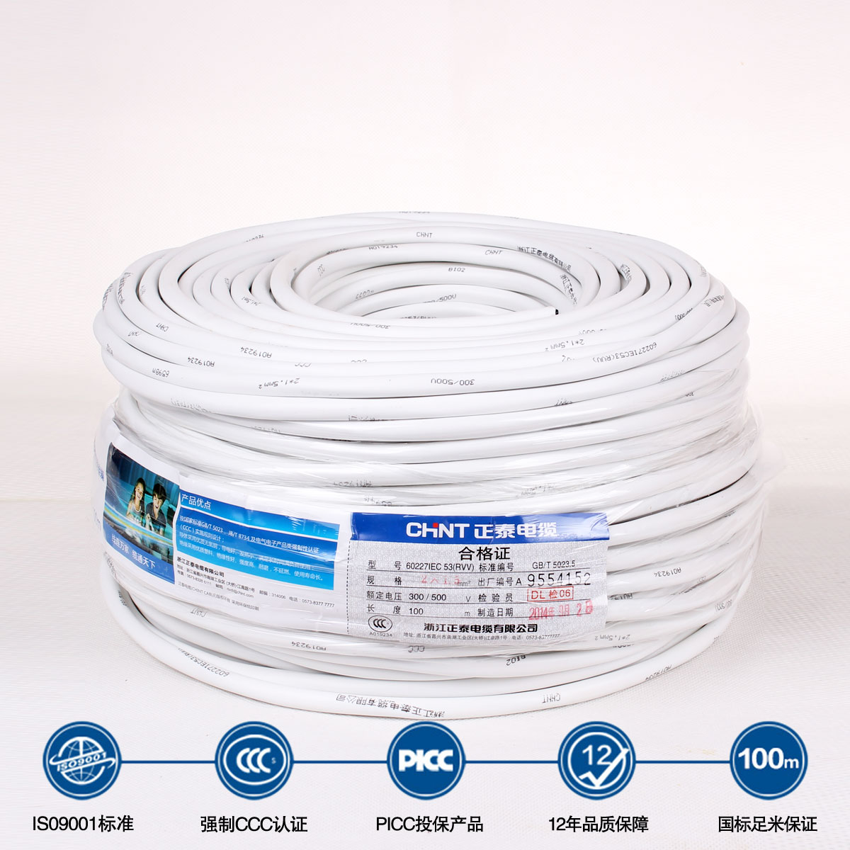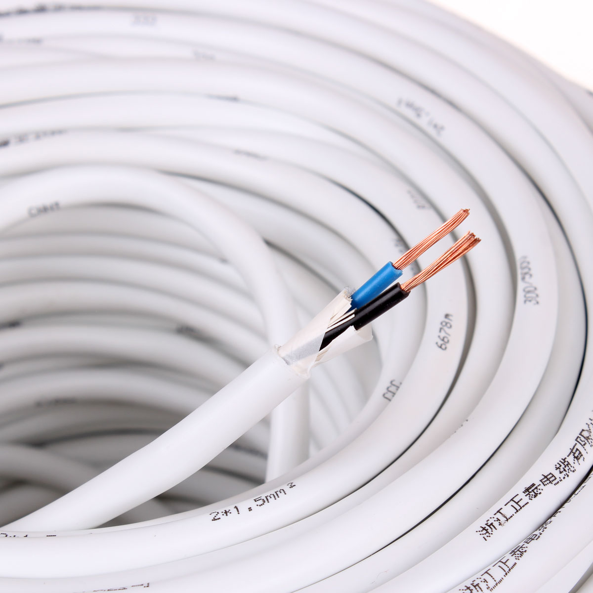 Zhengtai Wire & Cable Two-core jacket line RVV2 * 1 5 soft lines clear-fit wire white copper cored wire 100 m