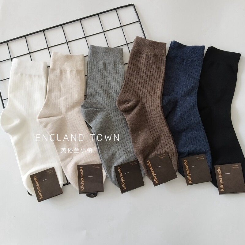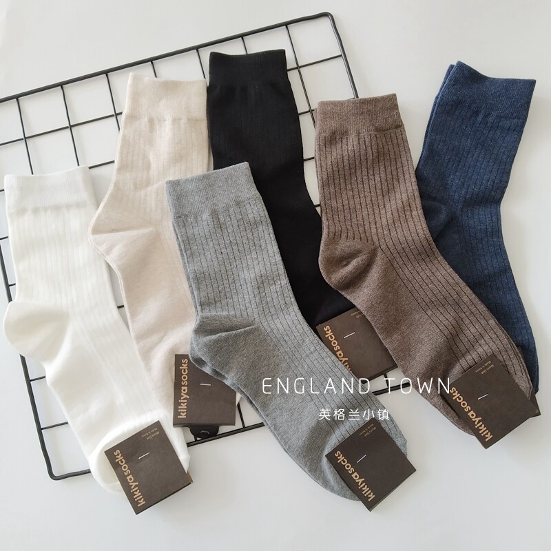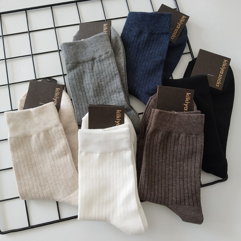 Imported Korean Dongdaemun men's socks vertical pattern solid color mid-tube socks tide ins stockings cotton sweat-absorbing business casual