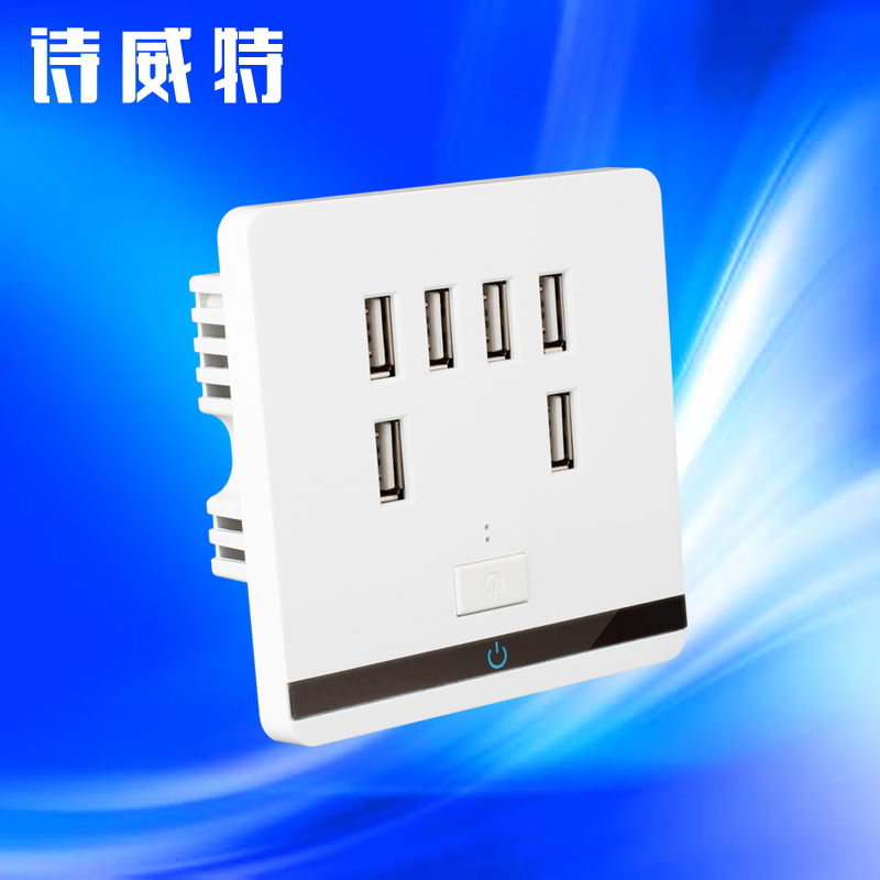 86 type four bit USB socket panel 220V rotate 5V six holes 6 USB charging wall socket low pressure 36V