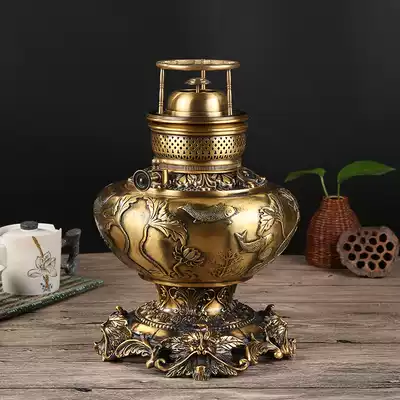 East air lamp kerosene lamp Pure copper tea making lamp Kung Fu tea making stove Open fire Tea making Old oil lamp Chinese tea set